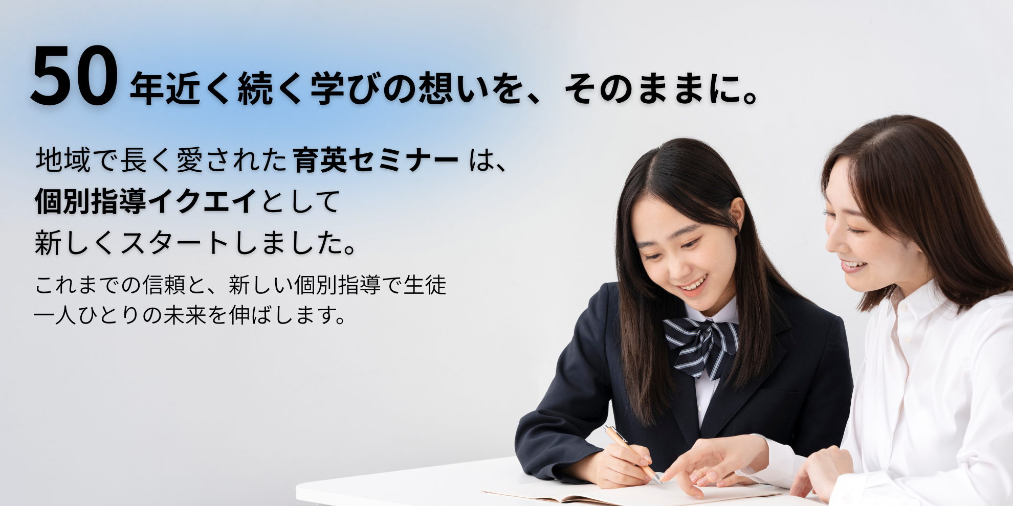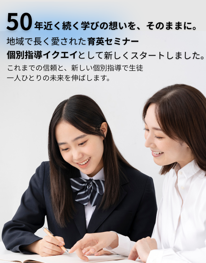 1977年創設の完全マンツーマン指導塾「育英セミナー」の伝統を受け継ぎ、兵庫県姫路市で半世紀近くにわたり地域の学びを支えてきた確かな実績と信頼があります。